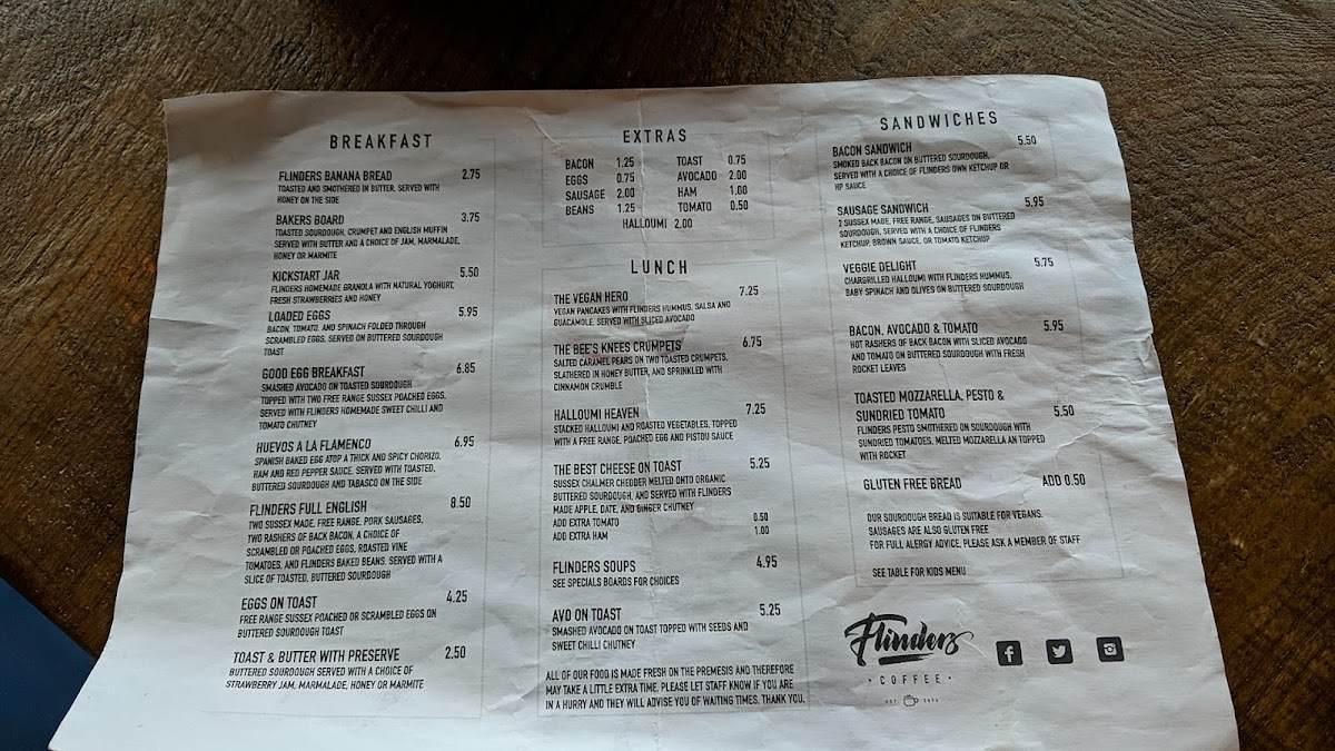 Flinders Coffee offers a straightforward yet thoughtfully curated menu that suits the relaxed and airy setting of this Haywards Heath café. Whether you’re stopping by for a morning boost or a leisurely weekend breakfast, you’ll find simple, satisfying options designed for comfort and ease.